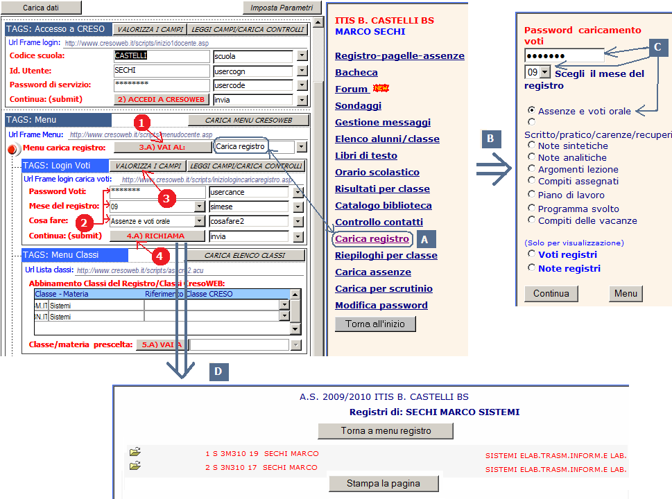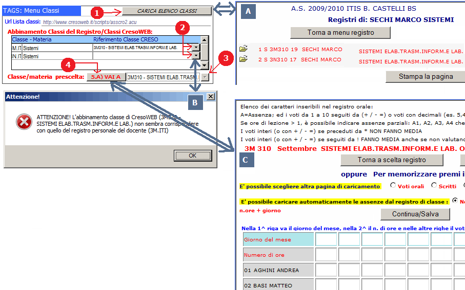 Classi del Registro/Classi CresoWEB") il nome della classe