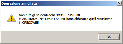 registrati su CresoWEB non coincidono con quelli presenti nel "Registro