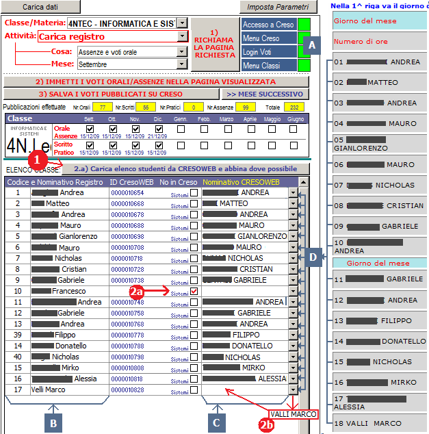 Clicchiamo sul pulsante "2.a) Carica elenco studenti da CRESOWEB e