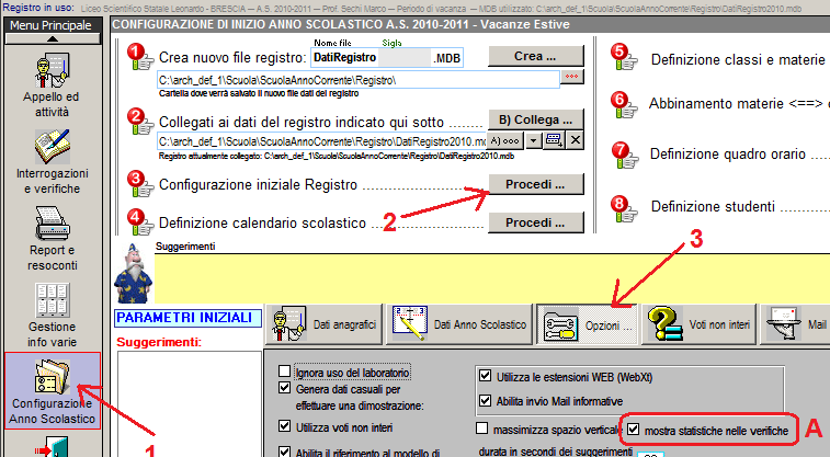 nel pannello "Opzioni" nella maschera di "Configurazione Iniziale