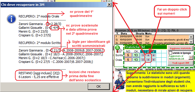 Facendo un doppio click sui numeri presenti nella griglia delle "Statistiche"