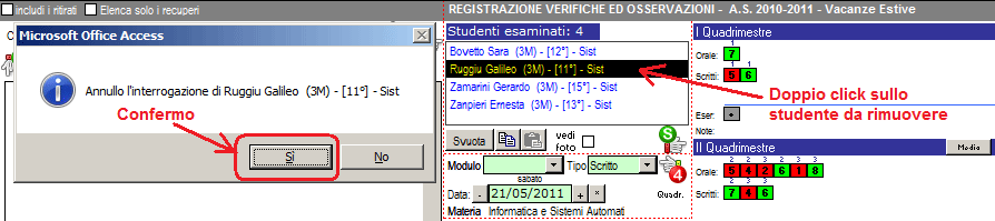 Se per errore ho selezionato uno studente sbagliato posso rimuoverlo con un doppio click