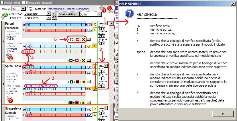 O.: orale, P.: pratico). Ad esempio se nel 1° modulo in