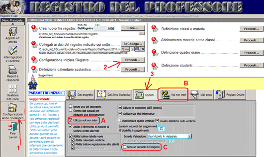 (A) Spuntare la voce "Utilizza voti interi" se voglio utilizzare valutazioni del tipo 7+, 6/7, 5=, ...