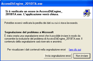 Se al termine dell'installazione del motore DB di Access 2010 appare un messaggio di errore di questo tipo