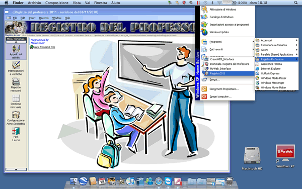 Terminata l'installazione possiamo iniziare ad utilizzare il REGISTRO DEL PROFESSORE richiamandolo con il menu || di Parallels Desktop.