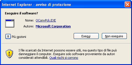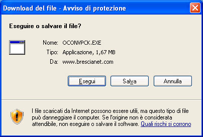 Quando appare la finestra "Download del file" cliccare sul bottone "Esegui" |