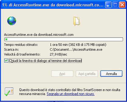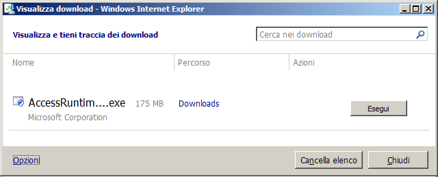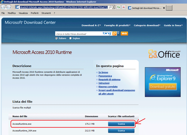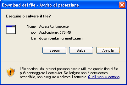 1) Iniziamo con lo scaricare da internet il Runtime di Microsoft ACCESS 2010. Potete utilizzare per comodità questo link (se al primo colpo non funziona ripetete il click sul link!)oppure copiare ed incollare, sulla barra degli indirizzi del browser, l'indirizzo: