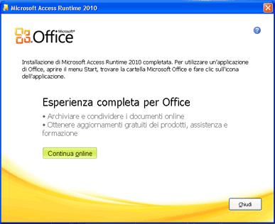 La procedura è conclusa. Dopo aver installato il Runtime di Access 2010, dovete procedere con l'installazione del "REGISTRO DEL PROFESSORE".